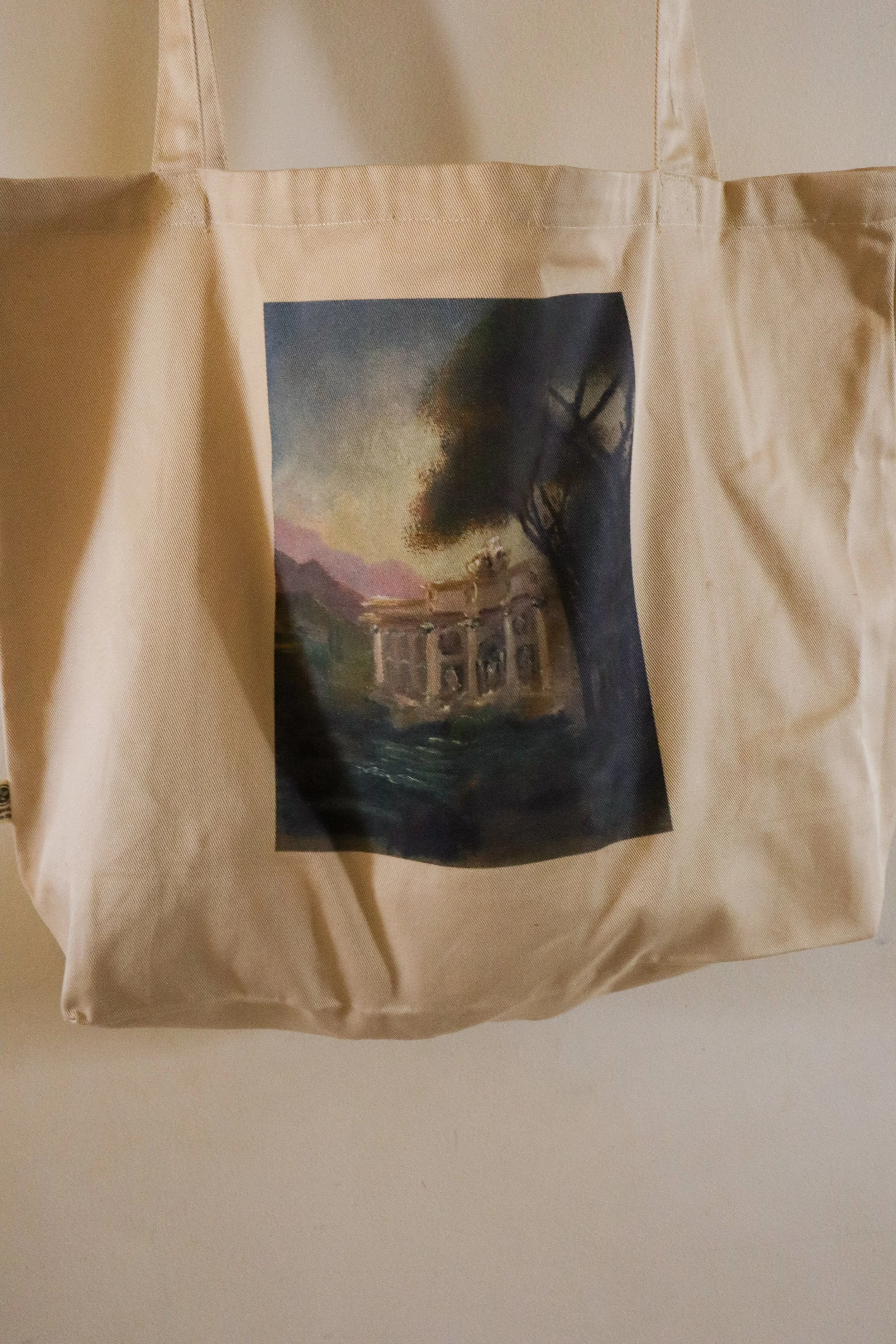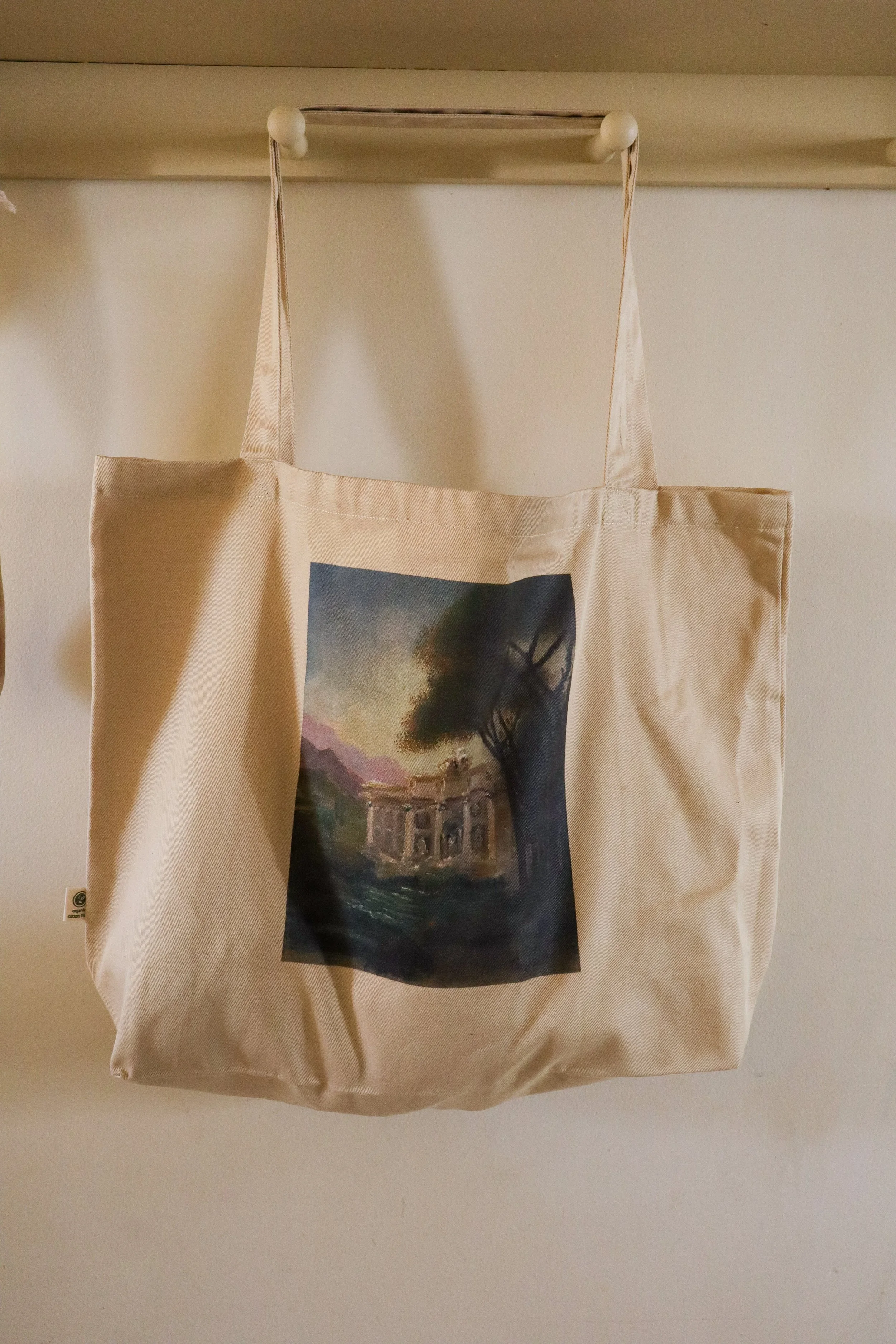 Carry art with you wherever you go with my Trevi Fountain large tote bag featuring the Trevi Fountain reimagined flowing into a river in the Italian countryside.